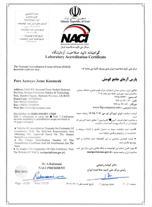 آزمایشگاه اکرودیته (همکار سازمان استاندارد) پیشرو و همگام با استانداردهای جهانی